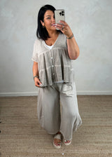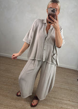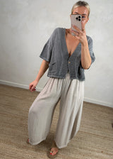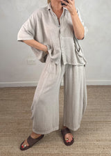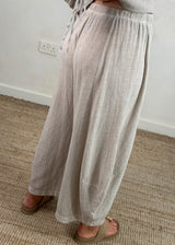Crafted in Italy from a luxurious linen cotton blend, the Delfina cocoon trouser in bone is the versatile essential every wardrobe needs.