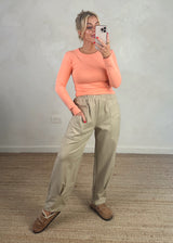 Easy to wear jersey jogger pant with stretch waist and tapered cuff...