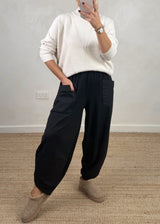 Easy to wear jersey jogger pant with stretch waist, wide leg and tapered cuff.…