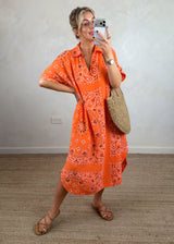 Bandana print tunic dress - orange