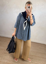 A versatile knitted neck tie in classic navy, designed to elevate any ensemble with effortless sophistication.