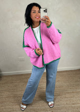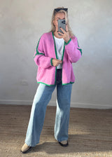 Indulge in the softness and versatility of the Ramona cardigan in pink/green, Get ready for the upcoming seasons with this must have addition to your wardrobe!