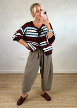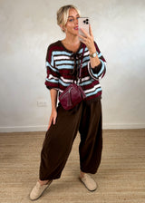 Rufus Striped tie front knit - chocolate