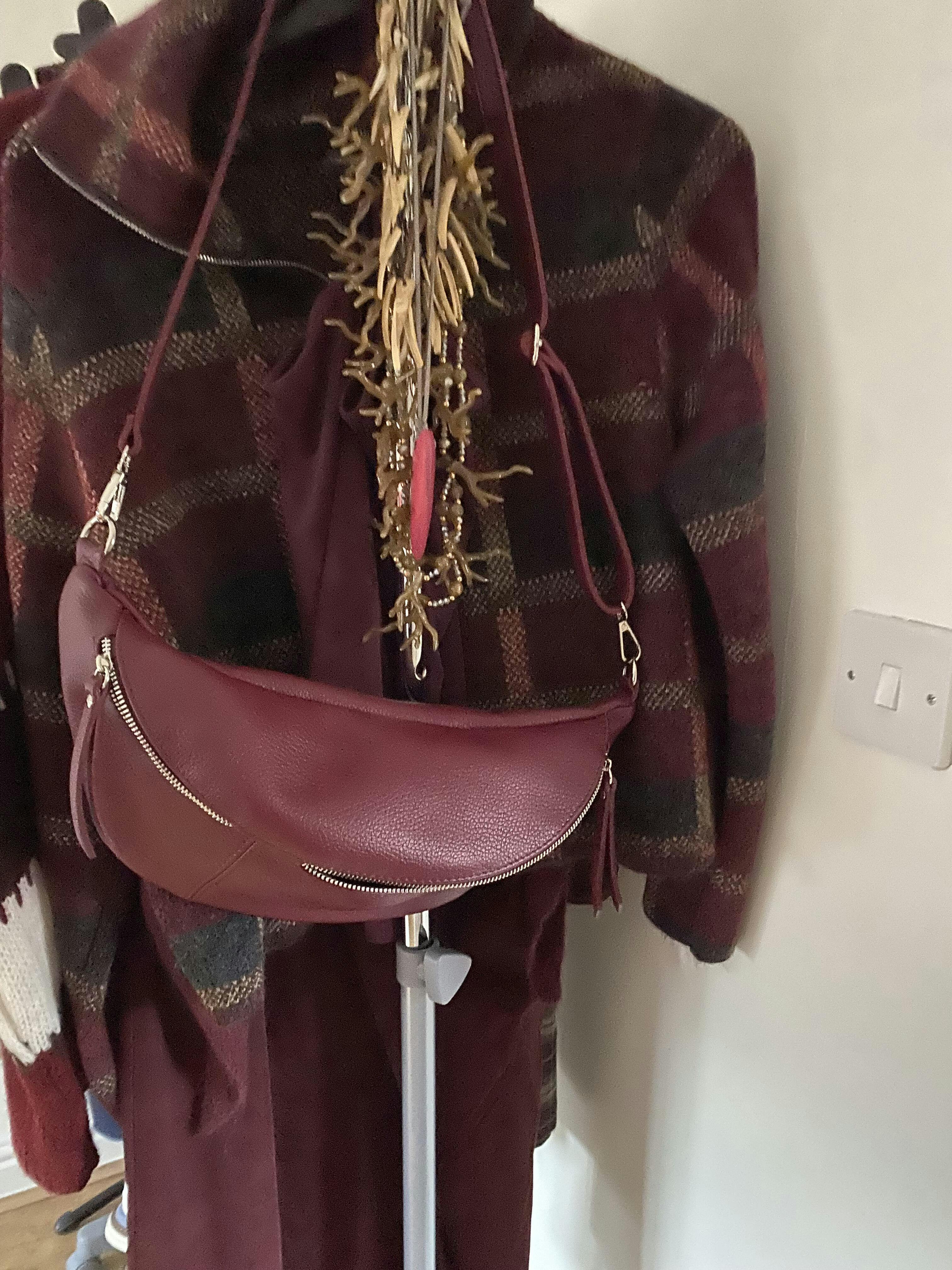 Beautiful sling bag that can be worn as a traditional bumbag or as a cross body with the adjustable leather strap.