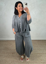Crafted in Italy from a breathable 50% linen and 50% cotton blend, the Valentina linen top in slate is the versatile essential your wardrobe has been waiting for.